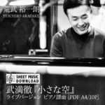 2021年1月4日 / 最終更新日時 : 2021年8月18日 OWR宣伝部 News 【デジタルダウンロード開始】荒武裕一朗(Pf)ライブ版『小さな空 (武満徹)』完全ピアノ譜面 荒武裕一朗(Pf)のライブ版『小さな空 (武満徹)』の完全ピアノスコアをダウンロード販売開始いたしました。 ご [...]