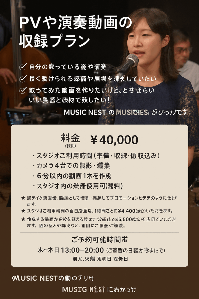 あなたの演奏や歌声を、プロモーションビデオのように美しく残しませんか?