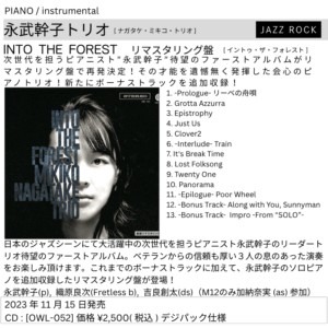 次世代を担うピアニスト”永武幹子”待望のファーストアルバムがリマスタリング盤で再発決定!その才能を遺憾無く発揮した会心のピアノトリオ!新たにボーナストラックを追加収録!