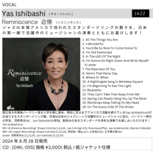 国立音大卒業後バークリー音楽大学入学を期に渡米、その後現在に至るまでアメリカで演奏活動を続けているYas Ishibashi(Vo)がお送りするスタンダードソング集。共演者には日米のジャズシーンで活躍中のミュージシャンに加え、バークリー時代の学友である河原秀夫(b)、Jun Saito(ds)も参加。馴染みのあるスタンダードを多彩な演奏でお楽しみいただけます!