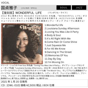 2012年に発売されたMASAKO KUNISADAの名盤、『WONDERFUL LIFE』がスペシャルBOXジャケット仕様にて復刻!
